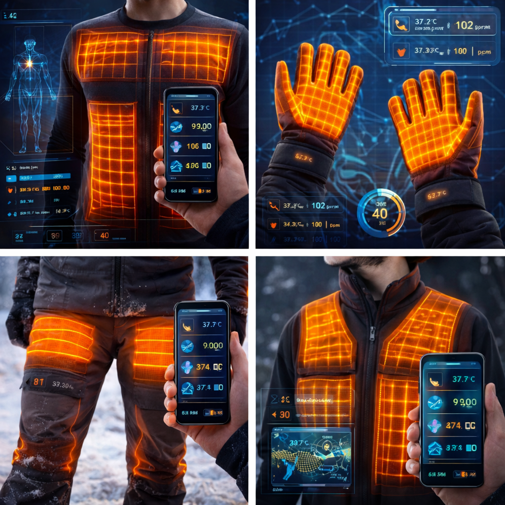 Hier präsentieren wir anschauliche Bilder, die die vielseitigen Anwendungen smarter Textilien in verschiedenen Bereichen verdeutlichen.